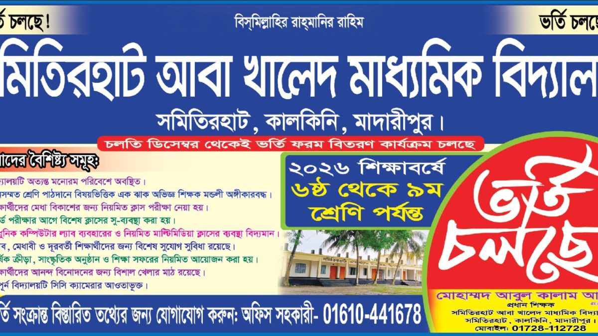 আমি সমিতির হাট আবা খালেদ মাধ্যমিক বিদ্যালয়ের সভাপতির দায়িত্ব পালন করে আসছি । এই প্রতিষ্ঠানের পরিবেশ মনোরম থাকায় প্রতিবছরই এই এলাকা ও পার্শ্ববর্তী এলাকার ছেলেমেয়েরা ভর্তি হচ্ছে । এখান থেকে শিক্ষক-শিক্ষিকা ও শিক্ষার্থীদের অক্লান্ত পরিশ্রমে প্রতিবছর শিক্ষার্থীরা অনেক ভাল রেজাল্ট করছে। প্রতিষ্ঠানটি এ এলাকায় শিক্ষা প্রসারে অনন্য ভূমিকা পালন করে চলেছে। উন্নত ও আলোকিত বিস্তারিত